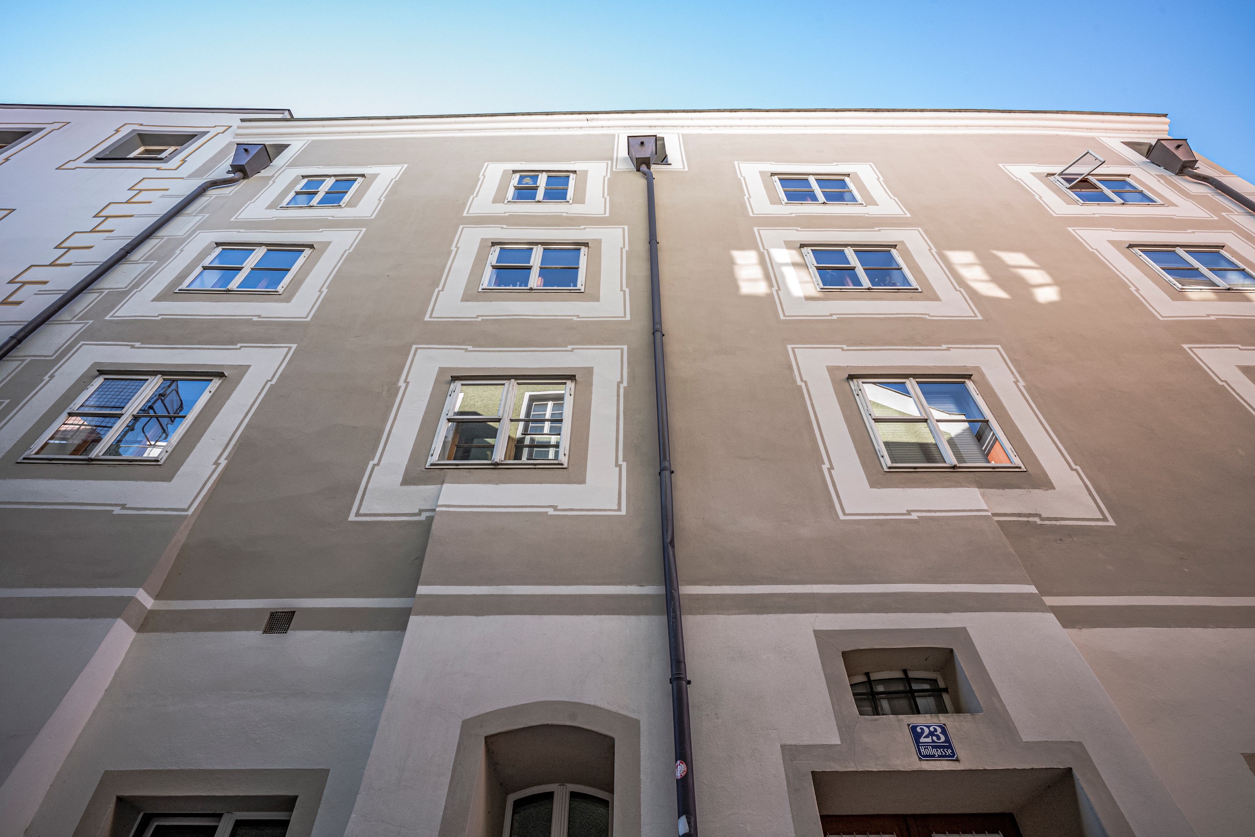 Called "Unter den Vischern" in old documents, Höllgasse later got its present name because of the strong silting up during floods. The Old High German word "hilg", which stands for "swamp", became dialectally "d'höi" and from this, the name Höllgasse derived. The houses were badly damaged in the great city fires of 1662 and 1680, but have survived the test of time. Even during the redevelopment of Passau's old town, which began in 1974, the historic building fabric was preserved.