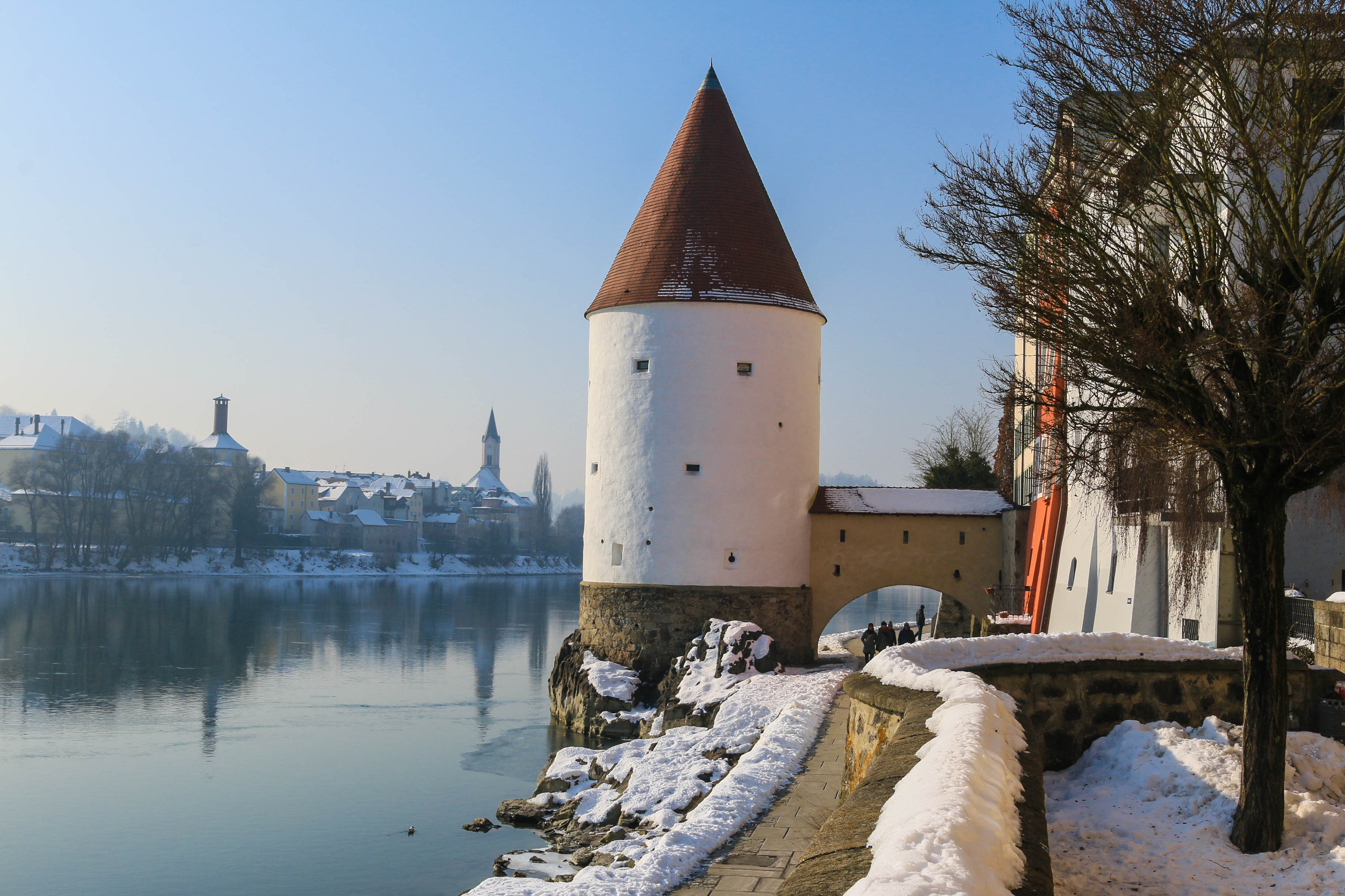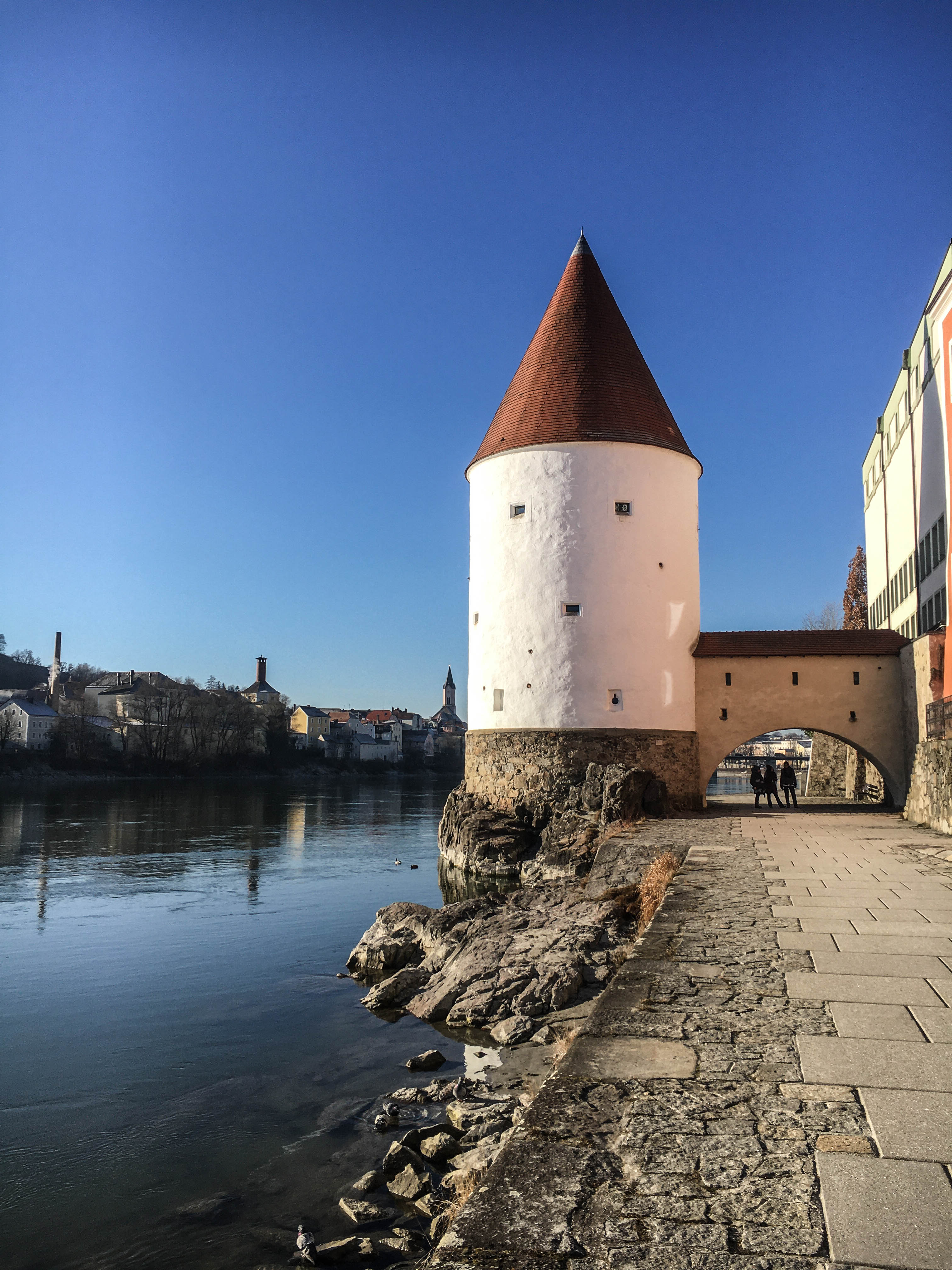 The marked round tower with its pointed roof dominates the view over the Innkai. The "Schaiblingsturm" is a popular fotospot and had several functions over the centuries. Today it belongs to the secondary school Leopoldinum and is used for workshops only a few times a year.